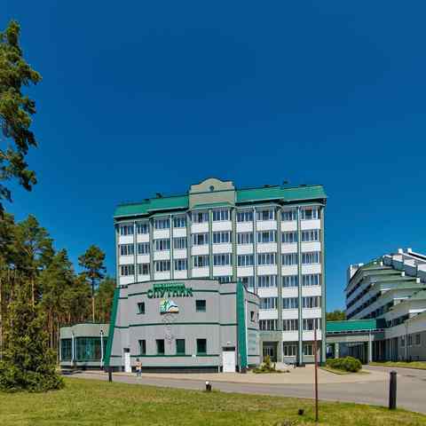 Санаторий «Спутник» находится в одном из живописных уголков Минской области — в курортной зоне Нарочь. Здравница расположена у воды, рядом с озером Нарочь, и окружена хвойным массивом, создающим особый микроклимат. Территория относится к природоохранной зоне Национального парка, благодаря чему здесь поддерживается чистота воздуха и спокойная атмосфера. Санаторий удобно расположен относительно города Мядель, а дорога из Минска занимает около двух часов, что делает его доступным для коротких и длительных поездок. Природная среда способствует отдыху, восстановлению сил и эмоциональному равновесию.
